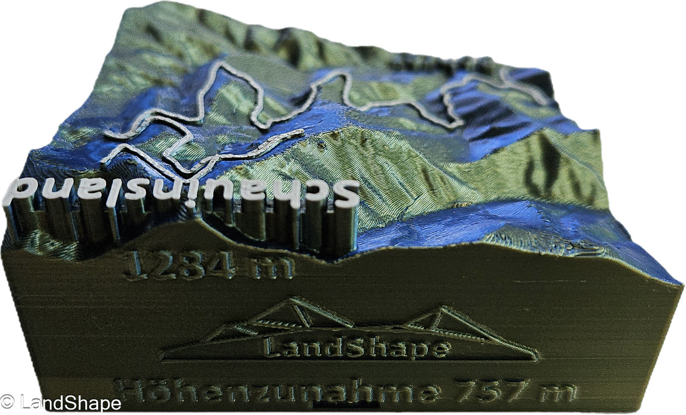 - Die 3D-Reliefs sind komplett von uns in Freiburg gefertigt, zusammengebaut und bemalt. Wir fertigen mit 100% Ökostrom.