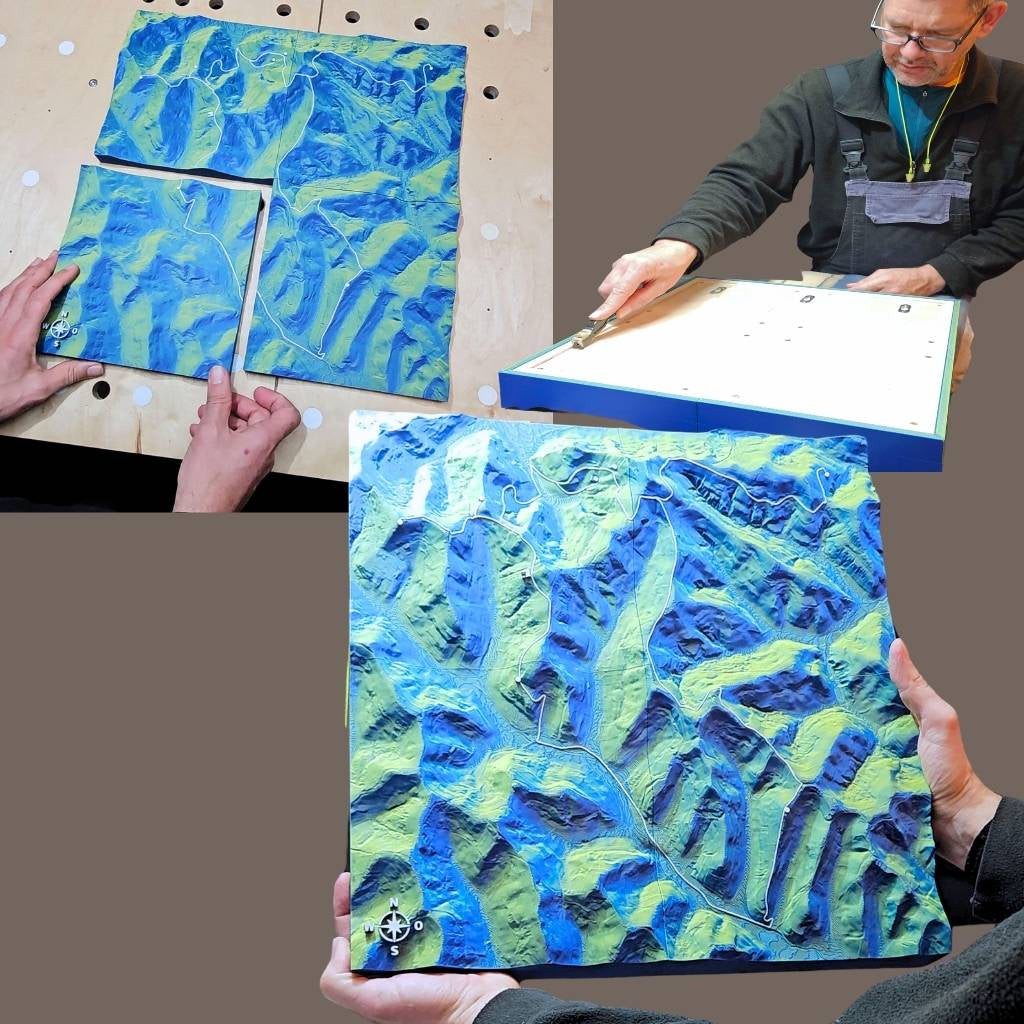 Heute hängt das fertige Relief als beeindruckendes Unikat bei ihnen – eine tägliche Erinnerung an besondere Orte, schöne Erlebnisse und ihre persönliche Landschaft.