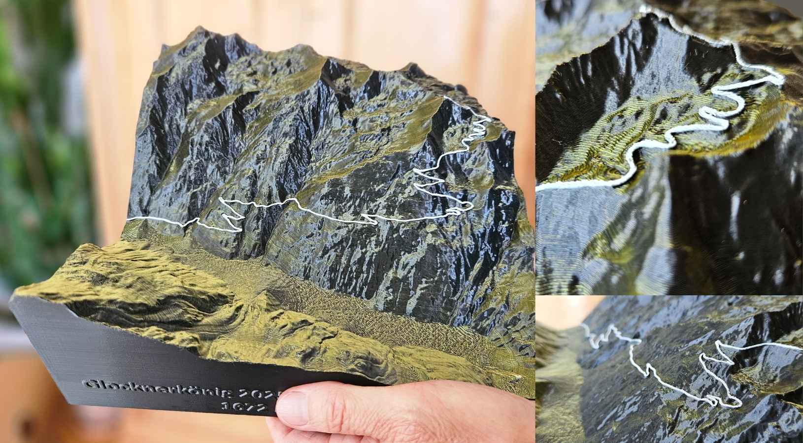 Kurz darauf kam er mit dem Wunsch nach einem individuellen 3D-Relief der legendären Glocknerkönig Radrennstrecke auf uns zu - ein ganz besonderes Erinnerungsstück.