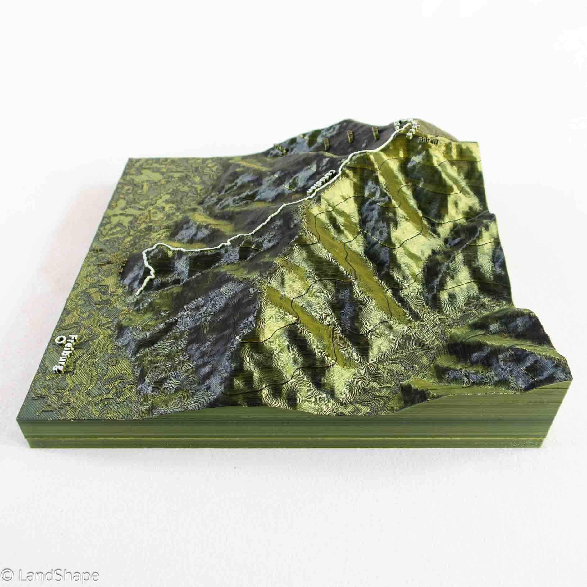 • Topographisch genau und hochaufgelöst mit 3D-Druck aus bioabbaubarem Kunststoff hergestellt